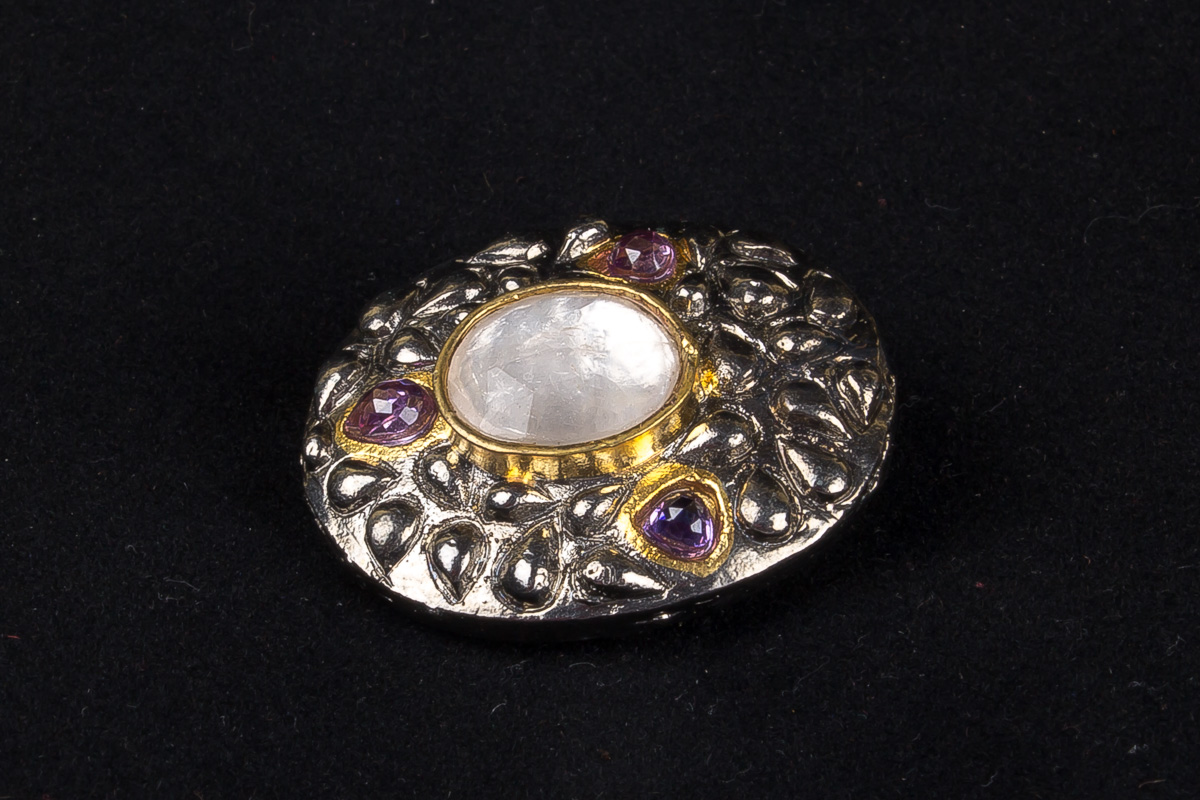 Handcrafted Brass Bead with Labrodite and Blue Sapphire Stones