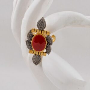 Gold Polish Brass Pipe with Red Coral Glass Stone Finger ring